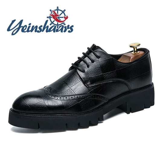 New Arrival Mens Casual Leather Shoes Thick Soled Formal Shoes Fashion Brogue Shoes Elegant Leisure Walk Oxford Male Shoes Adult
