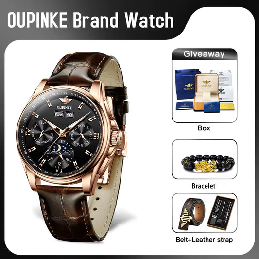 3189 Mens Watch Original Luxury Automatic Mechanical Watch Moon Phase Waterproof Luminous Mens Gifts Reloj Hombre